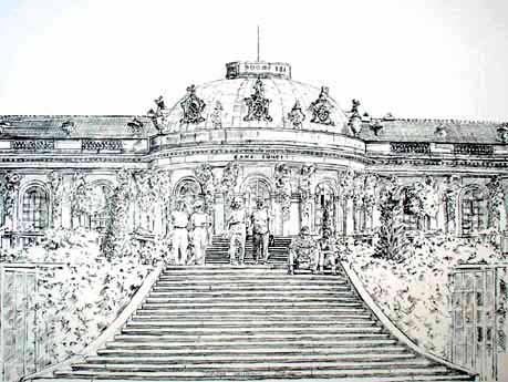 Erbaut von Knobelsdorff 1745 - 1747 nach Skizzen von Friedrich dem Großen; Weinbergschloss; Hauptwerk deutscher Rokokkoarchitektur; Südfassade mit Bacchantenhermen von Glume; Meisterwerke von Watteau, Pannini, Pesne.