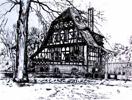 Die Villa Langenscheid wurde 1899/1901 erbaut von dem Verleger Carl Langenscheidt. Der Architekt war Bodo Ebhardt. Hier wohnte F. Langenscheidt. Ihr Mann ist im Krieg geblieben. Ihr Vater hat ihr deshalb das lebenslange Nutzungsrecht der Villa Langenscheidt testamentarisch überschrieben. Das Grundstück sollte schon mal verkauft werden für 6,5 Mill. vor 20 Jahren. Großes Grundstück von 6 500 qm. Renovierung im Jahre 2005 durch den Bauherrn K.-E. Tieleier-Langenscheidt, 80711 München.