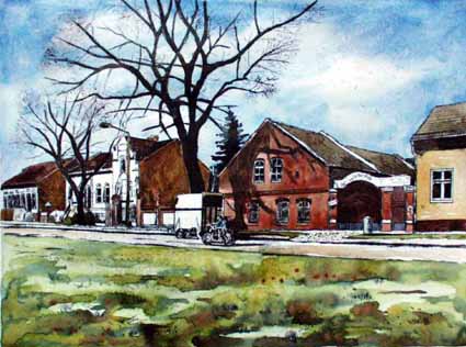 Blankenburg, seit 2001 Ortsteil des Bezirks Pankow. Das Dorf nordöstlich von Berlin wird urkundlich erstmals 1375 als Besitz des Tamme von Röbel erwähnt, nachdem bereits 1271 ein Anselm de Blanckenborch genannt wurde. Im Laufe der Jahrhunderte wechselten das Dorf und das entstandene Gut häufig den Besitzer. Seit 1710 gehörte das Gut als königliche Domäne und Vorwerk zum Amt Niederschönhausen. 1882 wurde es von der Stadt Berlin aufgekauft, die auf dem Gelände ein Rieselgut anlegte, dessen Felder die Ausdehnung des Ortes einschränkten. Die agrarische Nutzung überwog, und Handel sowie Gewerbe waren wenig ausgebildet. Die Dorfkirche (um 1240) ist erhalten, ebenso weitestgehend der Kern des einstigen Dorfes mit seinem baumbestandenen Anger. Die Umbauung des Angers stammt aus dem späten 19. Jahrhundert, das Baumaterial kam vorwiegend aus der örtlichen Ziegelei. Blankenburg gehörte bis 1920 zum Kreis Niederbarnim, wurde anschließend ein Ortsteil des Berliner Verwaltungsbezirks Pankow und ab 1985 ein Ortsteil des Verwaltungsbezirks Weißensee. Seit der Bezirksfusion 2001 gehört Blankenburg zum Bezirk Pankow, der sich aus den alten Bezirken Pankow, Prenzlauer Berg und Weißensee zusammensetzt. Der Bauernhof mit dem großen Tor (in der Mitte des Bildes) bietet dem Besucher Kutschfahrten an.